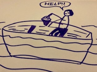 Als ik er nu op terug kijk vraag ik me af hoe ik het gedaan heb, maar ook waar was ik mee bezig? Ik was bezig met overleven, maar wel op een verkeerde manier. Als of je in een lekke roeiboot zit en je blijft maar water hozen. Hoe langer het duurde hoe harder ik moest hozen. Alle energie ging daar naar toe. Ik kon niet kijken waar de roeiboot was. Het enige dat ik wist was hozen, hozen en nog eens hozen. Toen ik opkeek en om hulp vroeg was ik zo moe, dat ik niet veel meer kon. Behalve natuurlijk hozen. Totdat ik twee lesdagen voor het einde van het schooljaar echt niet meer kon. Zo moe, ik kon bijna de trap niet meer afkomen, ik trilde als een gek en wist het niet meer.