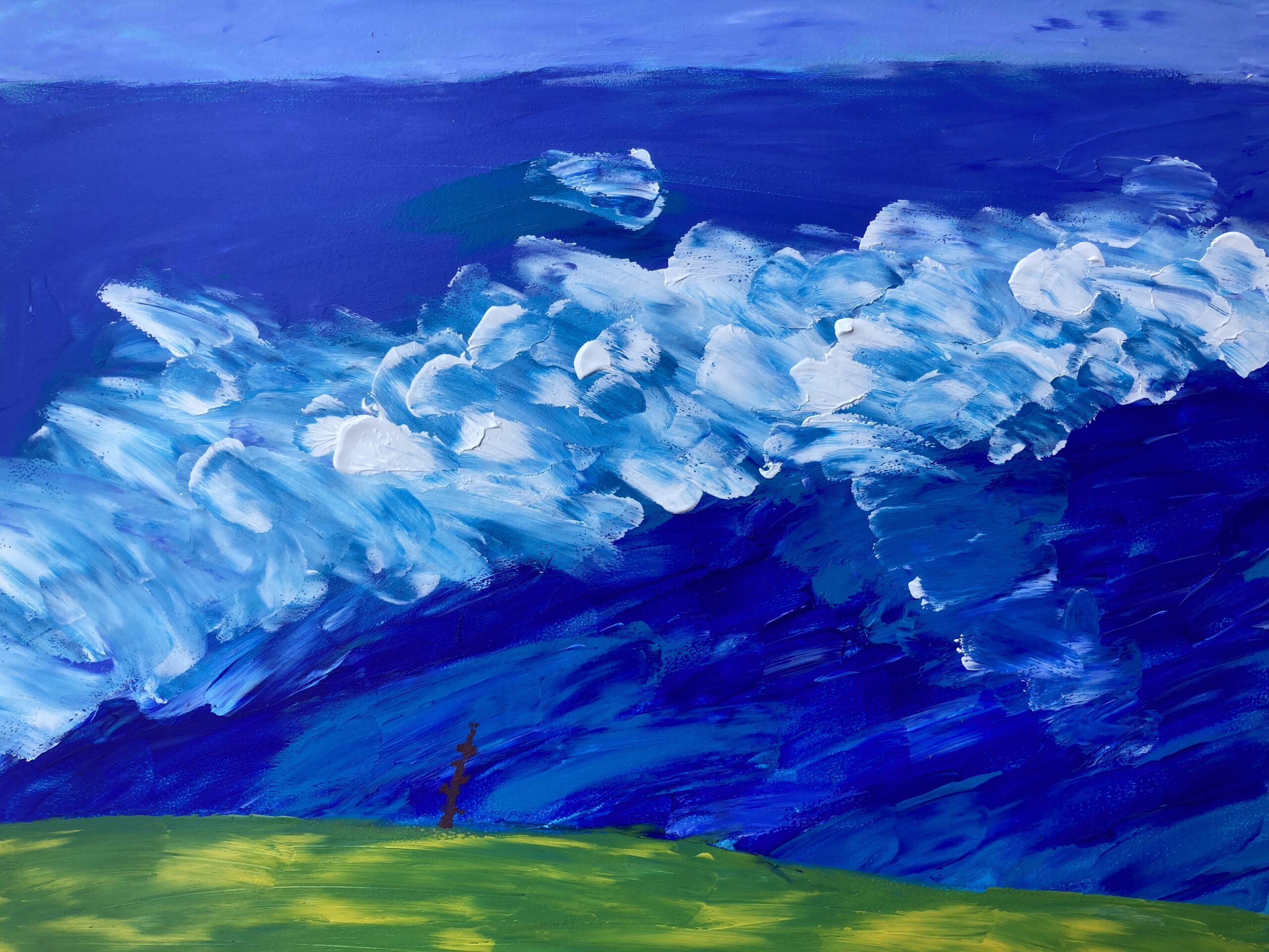 Ik wil je uitdagen om eens een doek (40x50cm bijv.)te nemen en ga dan vanuit je gevoel schilderen met je vingers.
